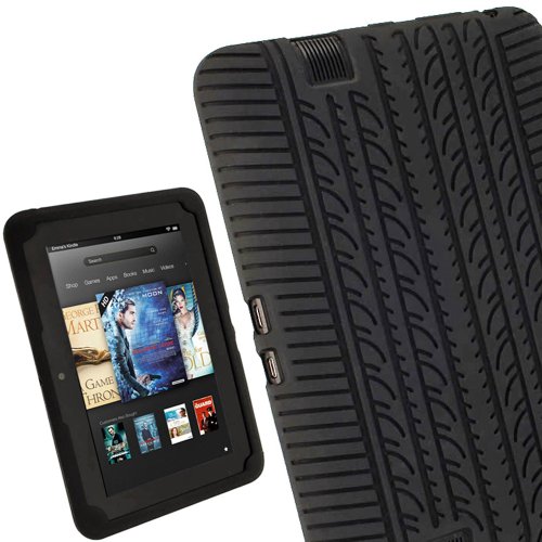 Description du produit pour igadgitz Noir Pneu Étui Housse Silicone pour Amazon Kindle Fire HD 7" Display Wi-fi 16GB 32GB Tablette + Protecteur d'écran